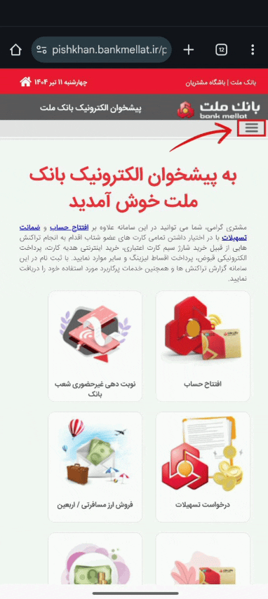 ۲- مراجعه به پیشخوان مجازی بانک ملت و انجام مراحل زیر به ترتیب