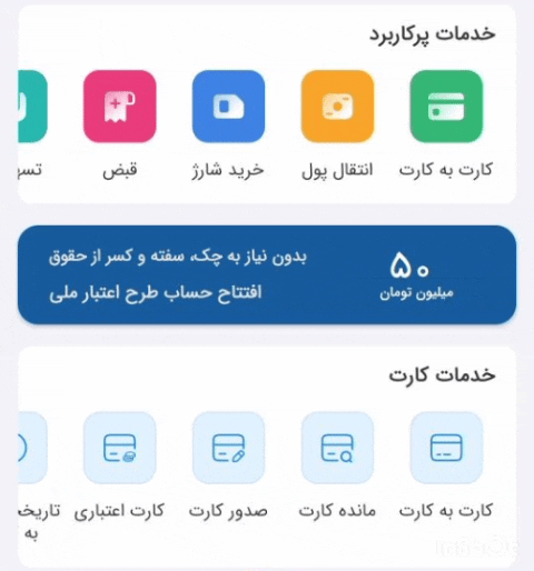 ۵- واریز مبلغ بدهی به صورت کارت به کارت به شماره کارت اعتباری از طریق تمامی خودپردازها و اپلیکیشن های موبایل بانک